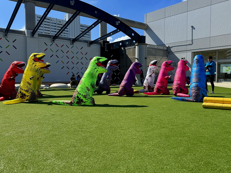 最後はお待ちかねのプチエアコスレース!恐竜になりきって走ろう!